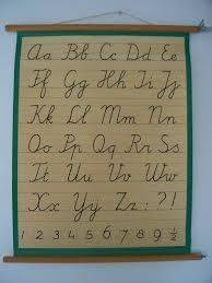 Deze prent hing voor in de klas. Zo moesten we de letters schrijven. Je schreef over drie lijntjes en dat kwam allemaal heel erg precies.