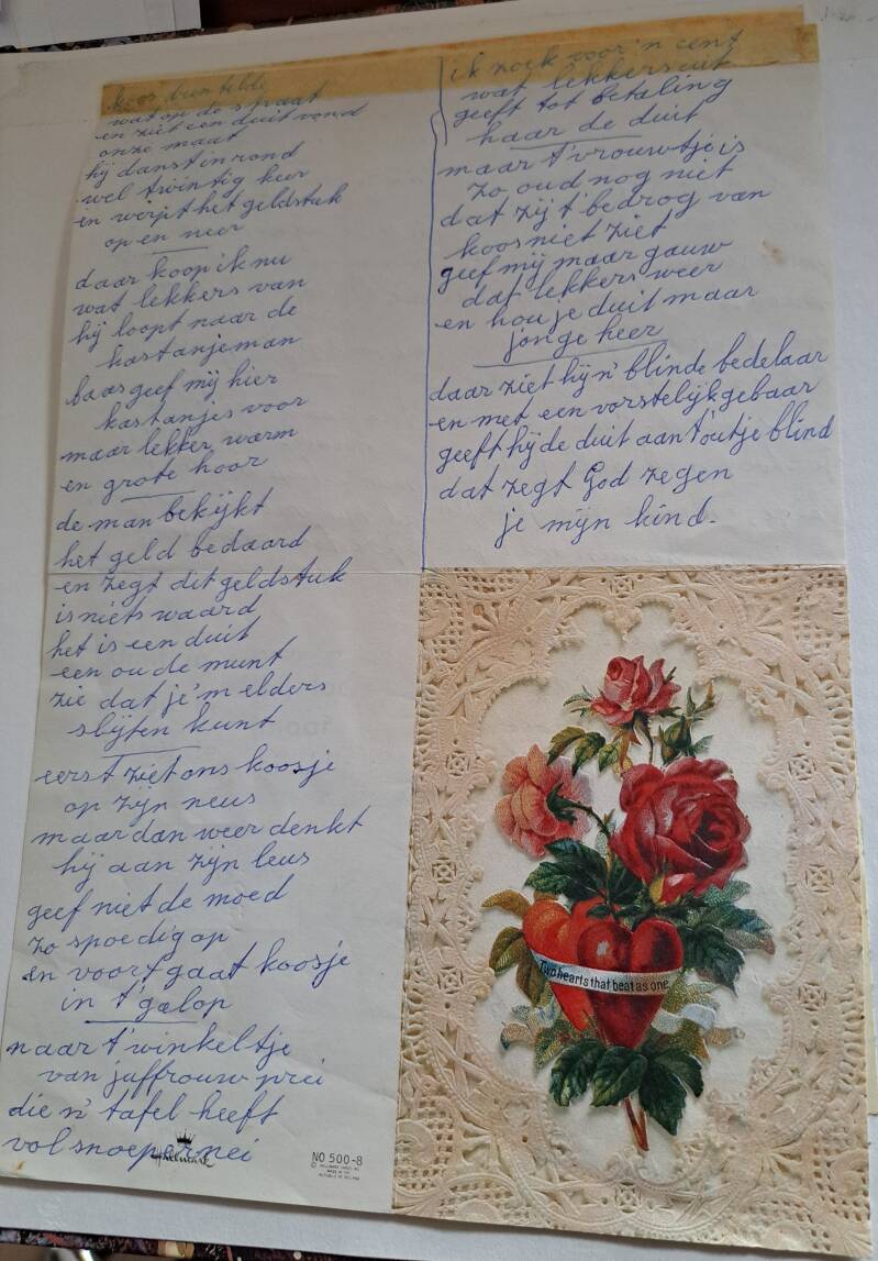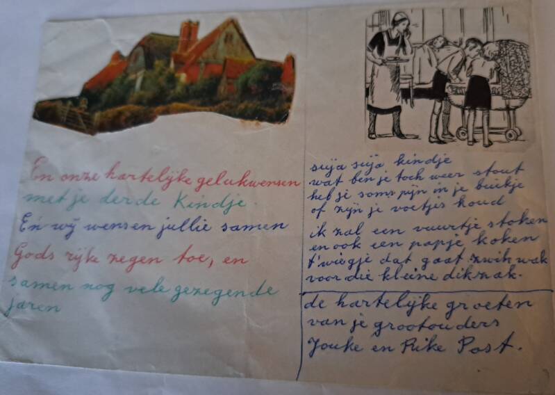 Rika kon prachtige verhalen vertellen, allemaal zelf verzonnen. Ook schreef ze brieven en versjes naar haar kleinkinderen en plakte daar allemaal mooie plaatjes bij.
